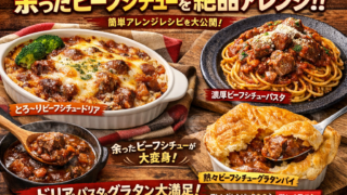 残り物のビーフシチューを前に、冷蔵庫の前で固まる時間が長くなっていませんか。昨日は「ごちそう」、今日は「とりあえず温め直し」。ドリアやパスタにアレンジしようとして、ビシャビシャのグラタン、油まみれのドリア、味がボヤけたパスタになり、子どもや...