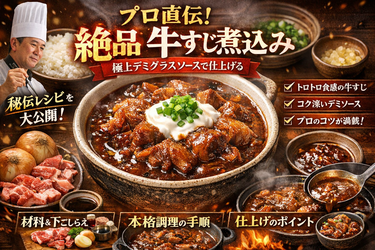 牛肉とすじを長時間煮込む料理ほど、「レシピの数字」より「火の入り方」と「一晩置く保存」が仕上がりを左右します。