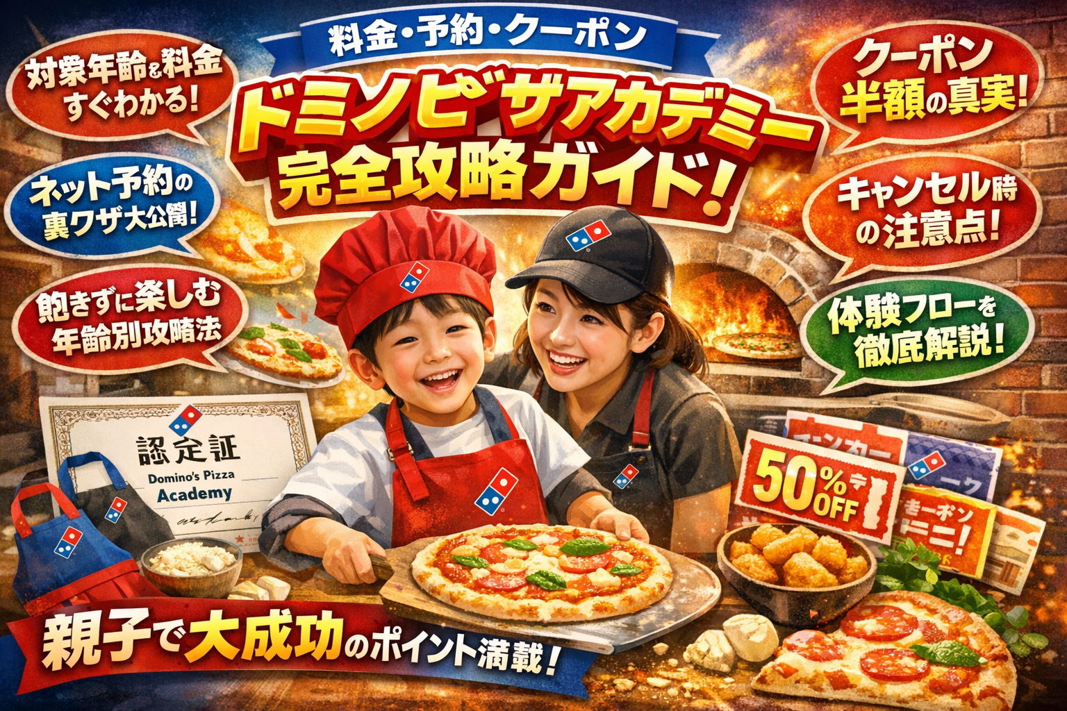 クリスマスや誕生日などイベント利用で失敗しない時間帯の選び方、持ち物と服装、写真撮影中に親が取りがちな危険な立ち位置、塩っぱすぎるピザにならないトッピングバランスまで押さえれば、ドミノピザアカデミーは「ただの子ども体験」から、親子の学びと思い出が両立する投資に変わります。この記事を読み切ってから予約するかどうかを決める方が、トータルの手残りは確実に増えます。