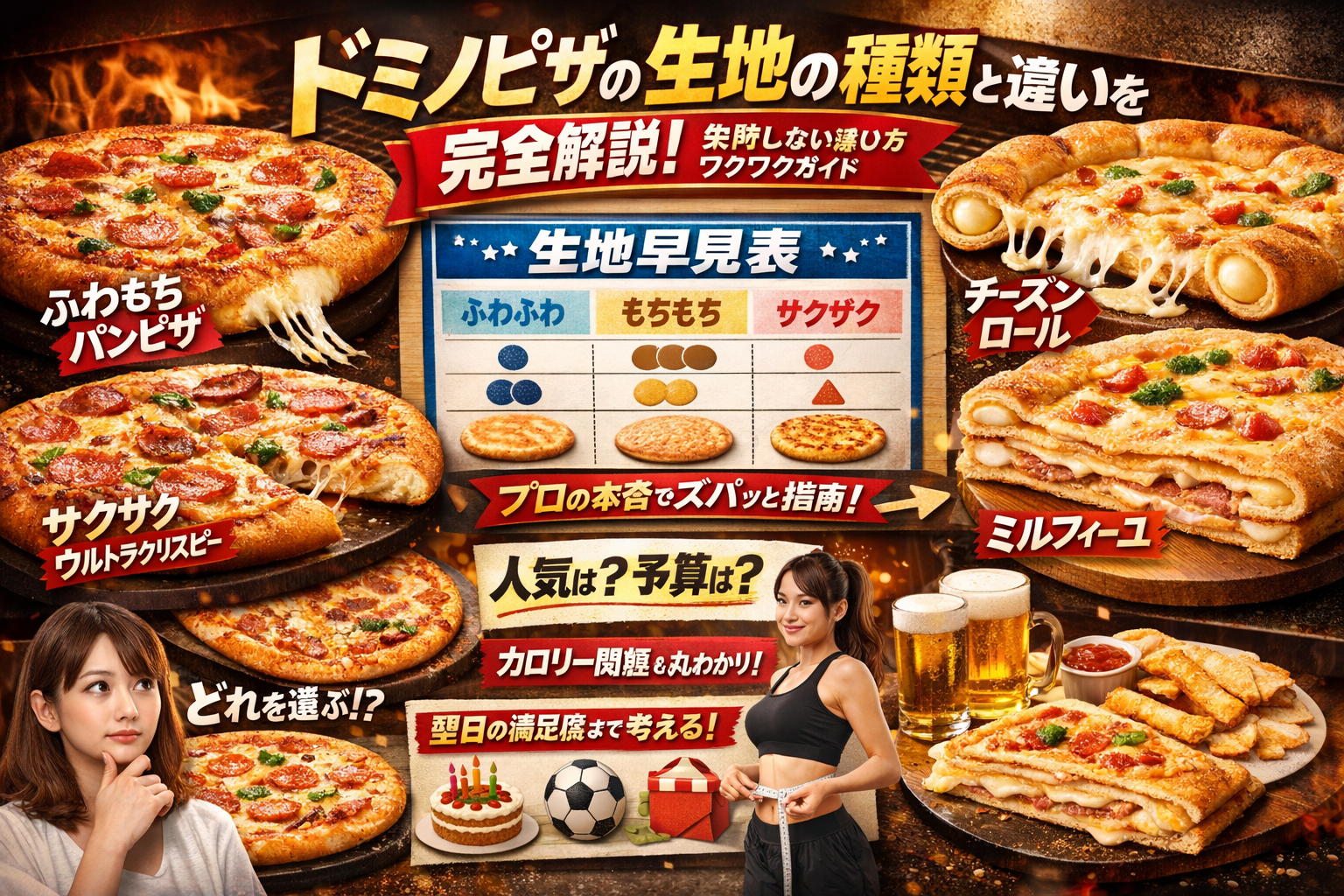 ドミノピザを開いてから、生地の種類とサイズで指が止まる時間が長いほど、満足度とコスパは静かに削られていきます。ハンドトスかパンピザかウルトラクリスピーか、チーズンロールやミルフィーユまで含めて、なんとなくの印象で選ぶと「重すぎて残る」「ウルトラクリスピーは損だった」「パンピザでカロリーオーバー」といった失敗に直結します。しかも、公式メニュー表や他サイトのランキングは、生地の違いを説明しても、人数やお腹の空き具合、翌日の体調まで踏み込んだ実務レベルの選び方までは教えてくれません。