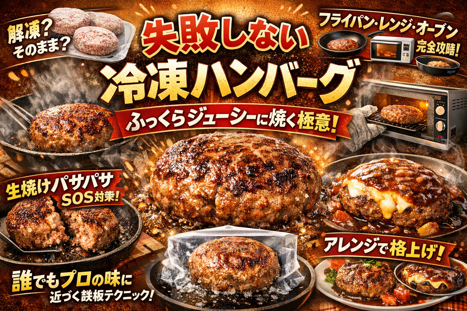 失敗しない冷凍ハンバーグをふっくらジューシーに焼くときの解凍や焼き方コツを完全攻略!誰でも簡単プロの味に近づく方法