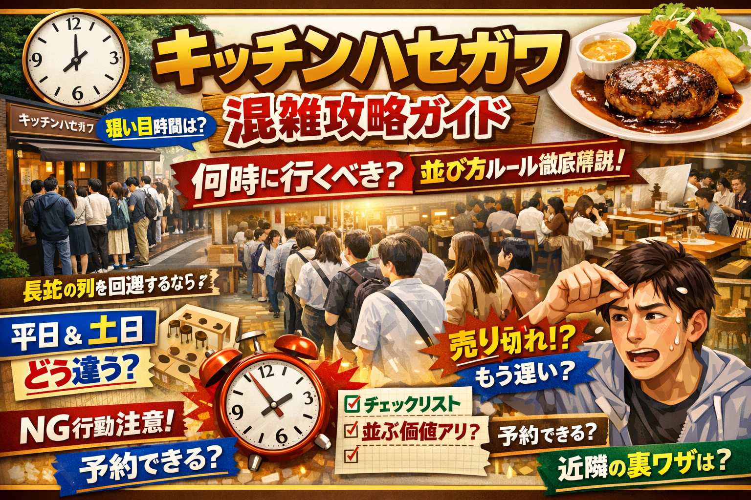 まず結論でキッチンハセガワの混雑状況は狙い目の時間帯と並び方のルールを一枚でざっくり把握できる