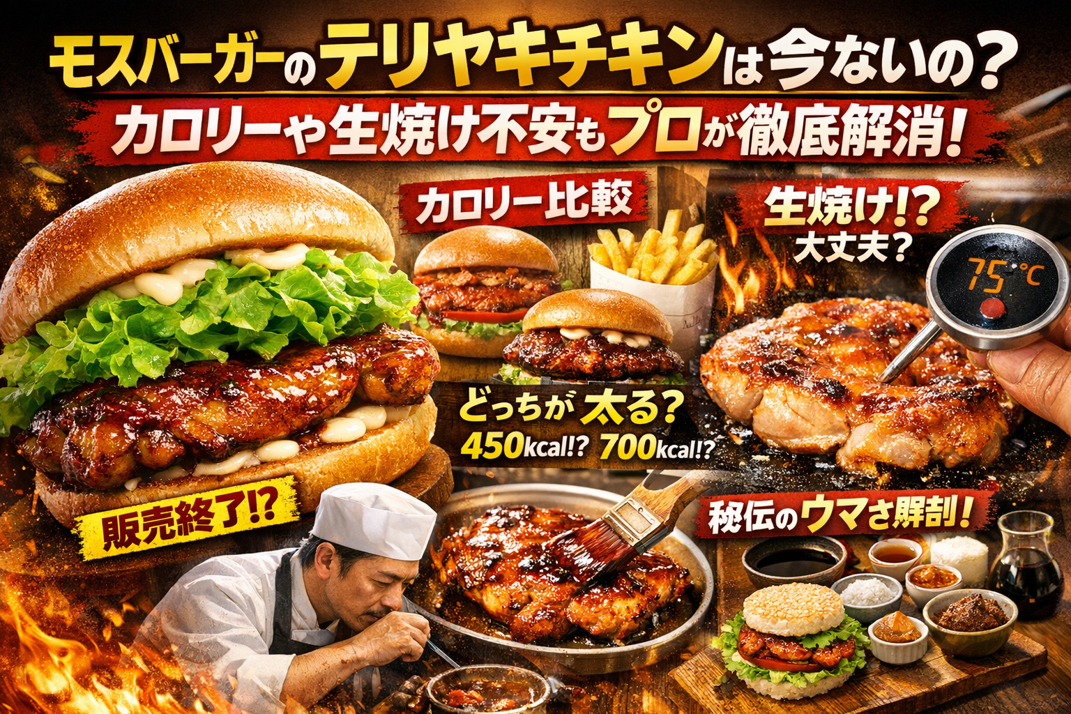 本記事は、現場で肉の火入れと照り焼きソースを扱う料理人の目線で、テリヤキチキンバーガーの販売状況、カロリーと値段、セットで太るポイント、生焼けと安全ライン、そしてモス風照り焼きレシピの設計までを一気通貫で解体する。砂糖と醤油、チキンもも肉の構造、ソースとバンズの組み合わせ方まで踏み込むため、「どれを選び」「どう頼み」「家ではどう作るか」が一度で決まるはずだ。