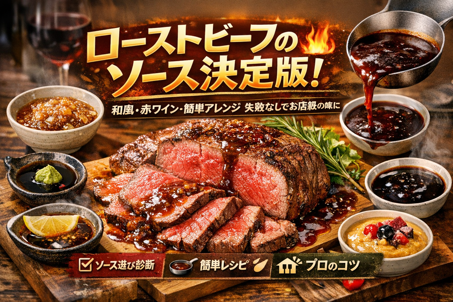 ローストビーフそのものはうまく焼けているのに、「ソースがいまいち」で印象を落としていませんか。実際、同じ肉でもソースの方向性を外すだけで、ハレの日が一気に“普通の夕食”に落ちてしまいます。この記事のゴールは、今目の前にあるローストビーフに対して「和風玉ねぎか赤ワインか、わさび醤油かバルサミコか、市販ソースか」を迷わず選べて、かつ失敗してもその場で立て直せる状態にすることです。