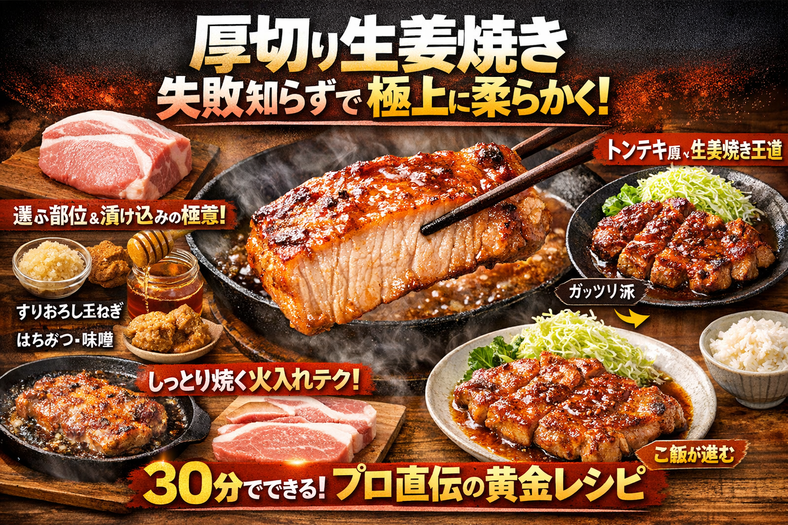 しょうが、にんにく、味噌、はちみつ――生姜焼き厚切りタレの三大バリエーション