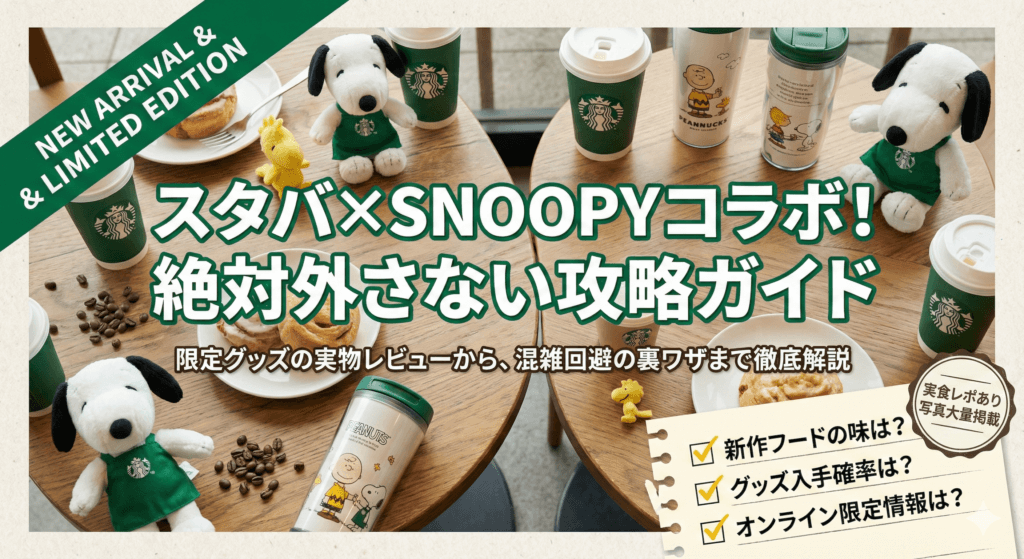 先に結論。開店30分前到着・購入上限の確認・支払い方法の事前設定で勝負が決まります。スターバックスとPEANUTSの人気企画は、初動で「タンブラー」「トートバッグ」から在庫が薄くなりやすい傾向。スタバスヌーピーコラボ狙いなら、グッズとビバレッジでレジが分かれる店舗か、入店整理を行う店舗を選ぶと回転が速いです。現地での立ち回りの基本は次の通り。